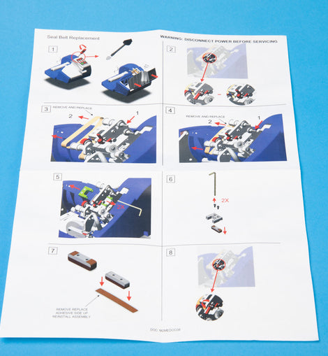 Details Blade Replacement Video Belt Replacement Video Reviews Details REPLACEMENT BLADE AND BELT V2 The blade is required to cut the film allowing the air cushions to pass through the inflator. The belts help pull the air cushions through the machine and seal the air cushions once inflation has occurred. • Belts (2)• Belt replacement instructions  • Blade *SPECIAL NOTE: Only for Serial #MP-1005000 and above (110V) and Serial #MP-2005000 and above (230V). ...
